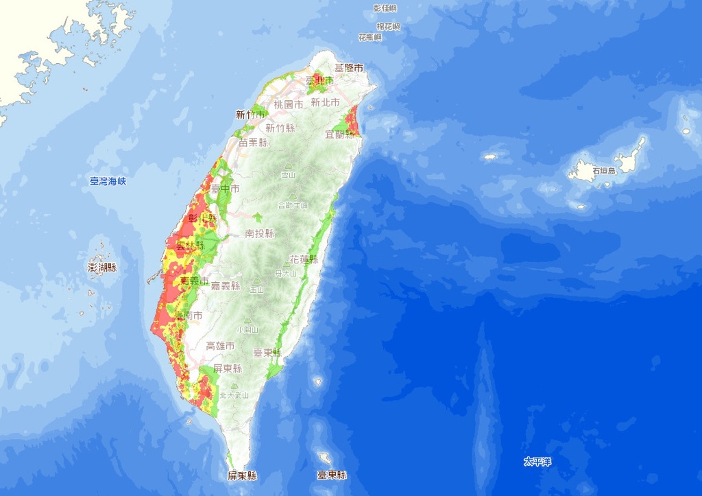 從「土壤液化潛勢查詢系統」中可看見全台概況,發現幾乎西南半部有一整排的土壤液化「高潛勢區」;至於北部的話,新北市沿著淡水河周邊,一路延伸三重、新莊,也都屬於土壤液化的「高潛勢區」,蘆洲、板橋則被列在「中潛勢區」。